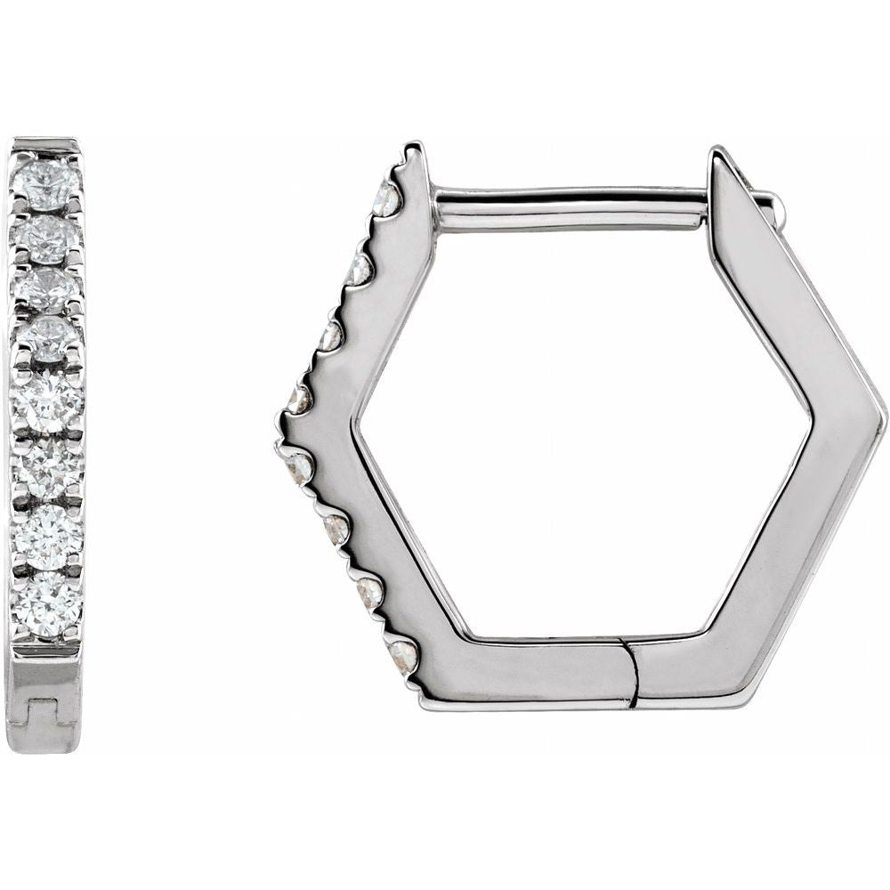 14K White Gold 1/8 CTW Natural Diamond Geometric Hinged Earrings