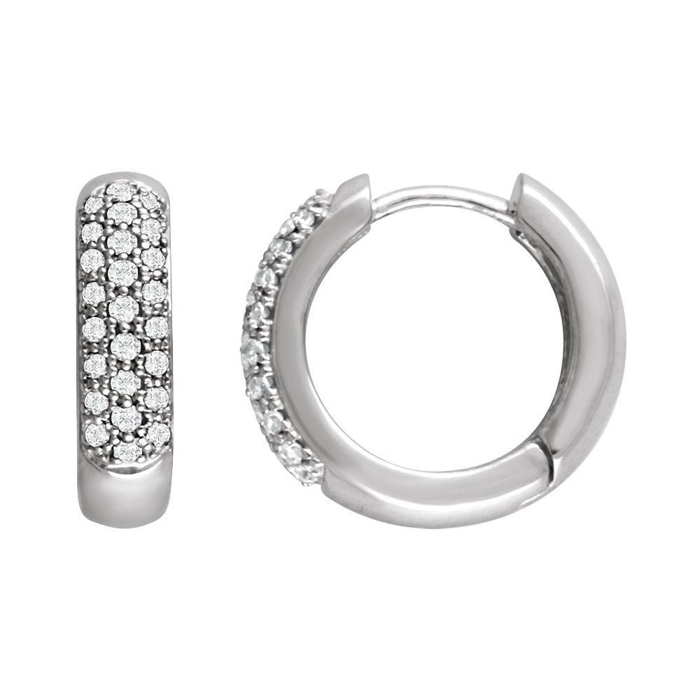 14K White Gold 1/3 CTW Natural Diamond Hoop Earrings – 15 mm Polished Hinged Hoops